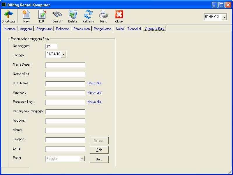 Bagian ini untuk mencatat member yang akan dibuat. Isian-isian apa saja yang harus dimasukkan. Bisa juga untuk mengedit data yang telah ada.